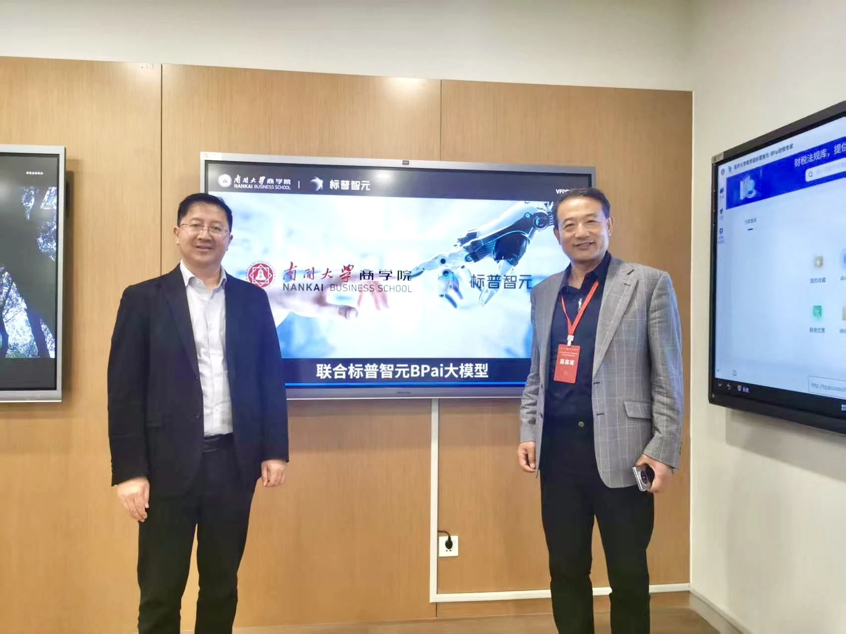 ↑标普智元营销VP刘勇(左)和南开大学商学院院长白长虹(右)合影留念